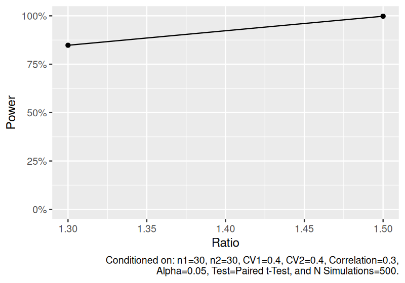 #> n1 n2 ratio cv1 cv2 cor distribution nsims test alpha power