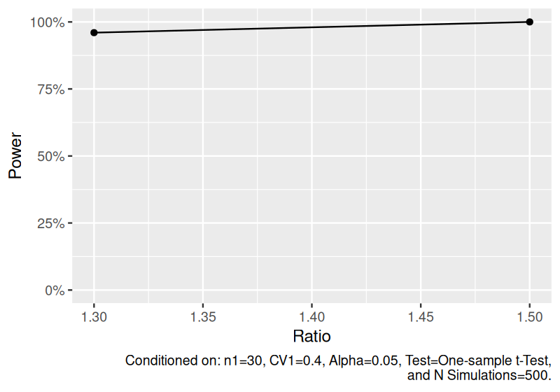 #> 2 30 1.5 0.4 One-sample log(lognormal) 500 One-sample t-Test 0.05 1