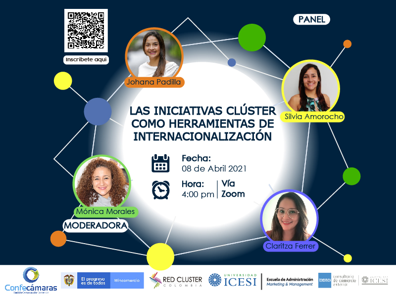 El Consultorio de Comercio Exterior, Icecomex, invita este jueves, 8 de abril a participar en el Panel: las iniciativas clúster como herramientas de internacionalización, que contará con la participación de cuatro mujeres líderes en éste tema, que han impulsado el desarrollo de sus regiones gracias al acompañamiento brindado a las empresas y a la trasmisión de sus conocimientos, experticia y profesionalismo. Inscríbete aquí https://www.icesi.edu.co/e/VentajaInternacionalCluster