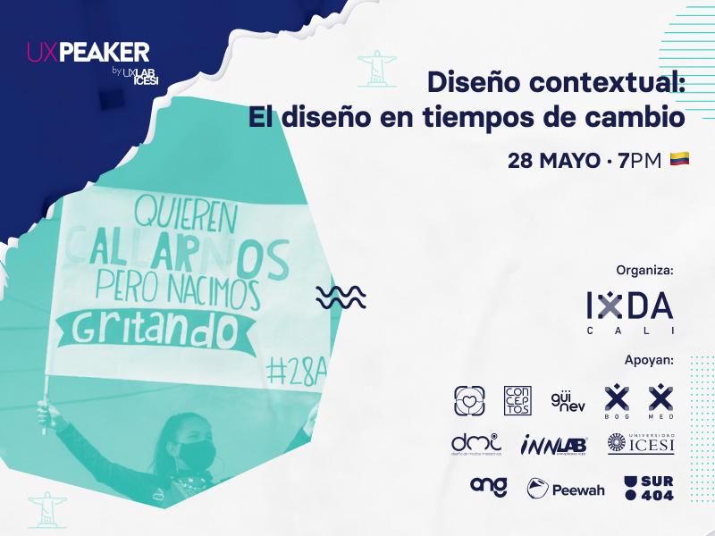 El UXLab de la Universidad Icesi e IxDA Cali, traen este 28 de mayo desde las 7:00 pm, la charla “Diseño contextual: El diseño en tiempos de cambio”. Ese día se abordarán temas como ¿Cuáles han sido, históricamente, los roles del diseño en escenarios de cambio, crisis y conflicto en Latinoamérica y el mundo? ¿Qué es el diseño más allá de su teoría y práctica tradicional a través de la ruptura de paradigmas? ¿Cuáles son lineamientos y aportes del diseño en el contexto actual? ¿Qué incidencia tiene el diseño en escenarios de cambio, conflicto o paz?