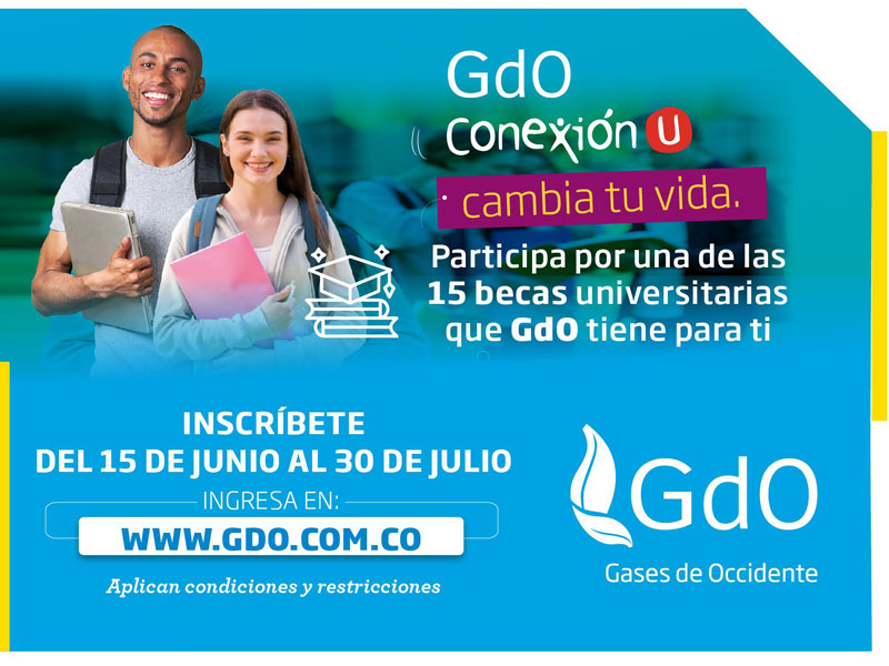 Este año el programa de becas universitarias de Gases de Occidente, Conexión U, le permitirá a jóvenes de estratos 1 y 2, usuarios de gas natural, acceder a becas para estudiar en la universidades Icesi. Conoce más de la convocatoria en www.gdo.com.co
