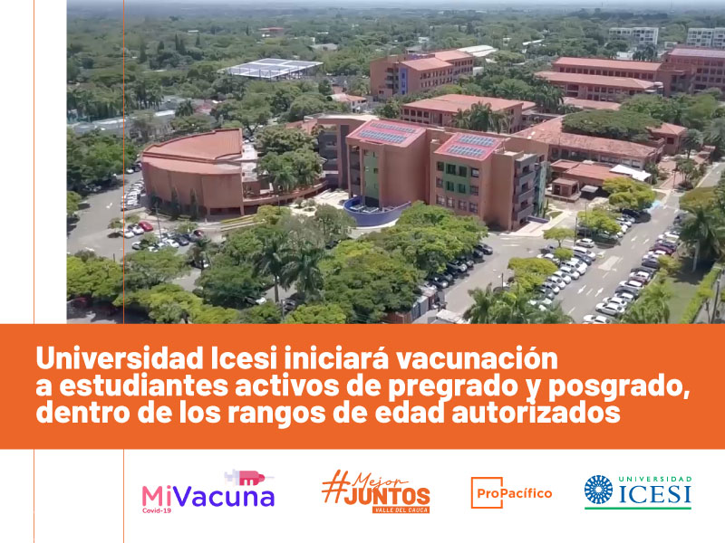 A partir de este martes 17 de agosto, la Universidad Icesi inicia la vacunación de sus estudiantes activos de pregrado y posgrado. El proceso se llevará a cabo en el Megacentro de Vacunación ubicado en el campus de la Universidad, en donde, igualmente, se continuará atendiendo a la población general, mayor de 25, de acuerdo con la etapa vigente del Plan de Vacunación del Gobierno Nacional.