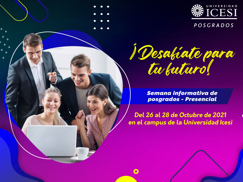 Es momento de vivir de nuevo la presencialidad, te esperamos en el campus de Icesi en nuestra Sesión Informativa de Posgrados entre el 26 y el 28 de octubre, a partir de las 6:00 pm. Durante estos días, los directores de las Especializaciones, Maestrías y Doctorados estarán atendiendo a los interesados en desafiar su futuro y estudiar en la Icesi.