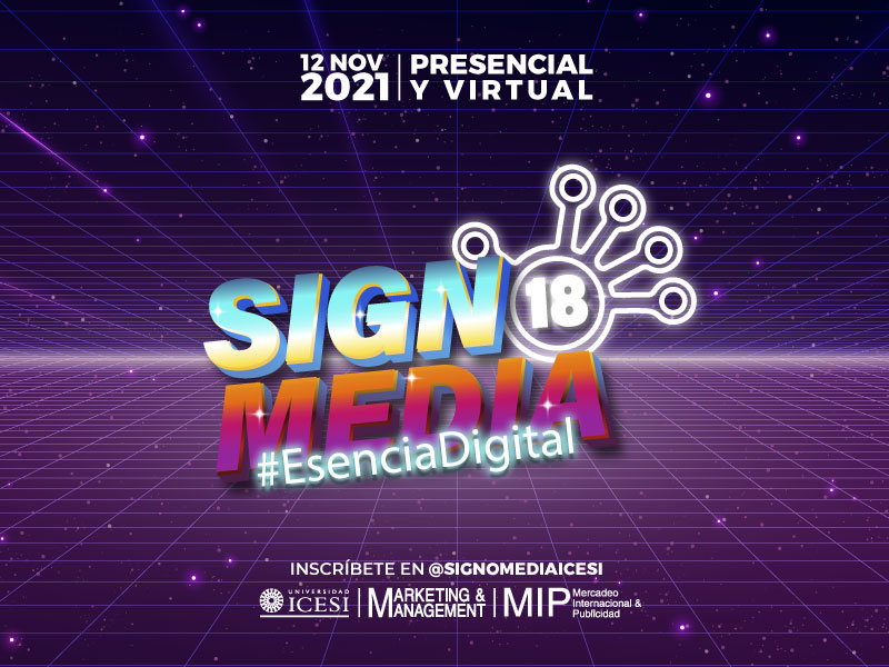 Los estudiantes del programa de Mercadeo Internacional y Publicidad invitan a la versión 18 del evento de mercadeo digital más grande del suroccidente colombiano: SignoMedia. Esta edición se levará a cabo el 12 de noviembre, desde las 9:00 a.m. hasta las 5:00 p.m., en el auditorio Manuelita. Inscríbete en: https://peewah.co/events/signo-media-18