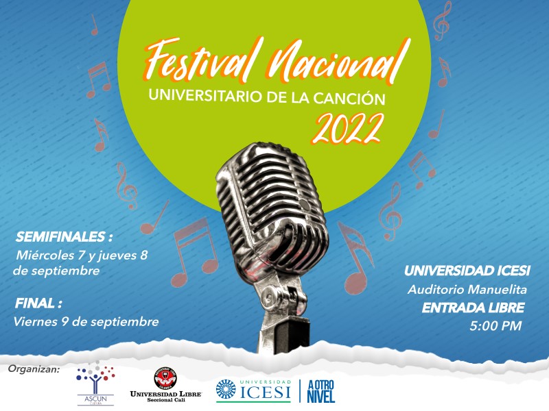 El 7 y 8 de septiembre se realizarán las eliminatorias y el 9 se llevará a cabo la gran final, que además tendrá transmisión virtual a través del enlace: https://www.icesi.edu.co/e/FestivalNacionalDeLaCancion