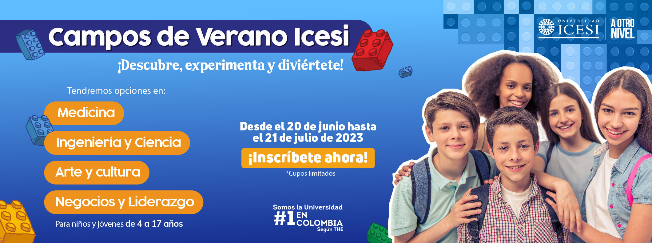 Nuevamente llegaron los campos de verano en Icesi y estamos emocionados que tus hijos sean parte de momentos llenos de aprendizaje, diversión y crecimiento en la Universidad #1 en Colombia. Los Campos de Verano ofrecen experiencias enriquecedoras para niñ@s y jovenes de 4 a 17 años, brindando una oportunidad única para potenciar sus habilidades y conocimientos a través de emocionantes actividades.