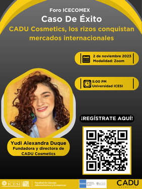 El Consultorio de Comercio Exterior de la Universidad Icesi, Icecomex, invita el próximo 2 de noviembre a las 5:00 p.m., a su próximo foro titulado Caso de Éxito: Cadu Cosmetics, los rizos conquistan mercados internacionales. Inscríbete aquí https://www.icesi.edu.co/e/Cadu