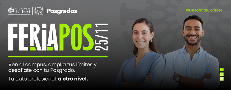 El campus de Icesi se vestirá de gala el 25 de noviembre para presentar su distinguida oferta de posgrados en la Feria Pos. Profesionales de todo el país tendrán la oportunidad de explorar una amplia gama de más de 42 posgrados en diversas áreas del conocimiento que ofrece la prestigiosa Universidad Icesi. Sumérgete en una experiencia única donde podrás adentrarte completamente en el programa de tu elección.