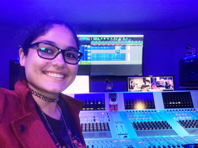 Abril Colmenares, graduada del programa de Música (2022), es Ingeniera de Audio con amplia experiencia en Sonido en Vivo, Mezcla, Mastering, Grabación, Canto y Voice Over. Participó como asistente de producción de la cantante y compositora Becky G.