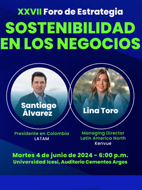La Facultad de Negocios y Economía y la dirección de Posgrados invitan el próximo martes 04 de junio a las 6:00 p.m., en el auditorio Cementos Argos a la versión número 17 del Foro de Estrategia Organizacional, que para esta ocasión abordará como eje central la sostenibilidad en los negocios. El foro estará a cargo de Santiago Álvarez, presidente en Colombia de LATAM y Lina Toro, Managing Director para Latin Amérixan North de Kenvue. Inscríbete aquí https://peewah.co/events/xxvii-foro-de-estrategia