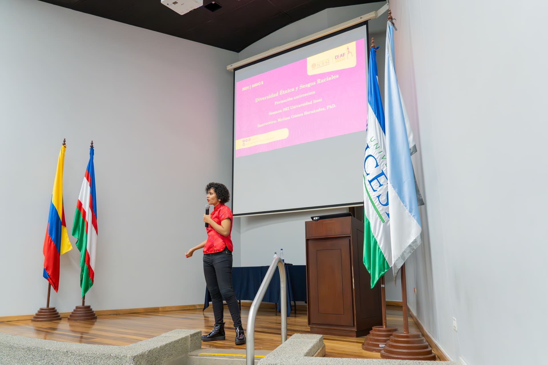 El Centro de Estudios Afrodiaspóricos –CEAF– se unió a esta iniciativa con dos talleres. Por un lado, la profesora Melissa Gómez Hernández, directora del CEAF, lideró un espacio de reflexión sobre la importancia de desafiar los prejuicios raciales y promover la diversidad étnica dentro de nuestra comunidad universitaria.