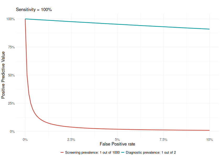 PPV_diagnostic_vs_screening(max_FP = 10,