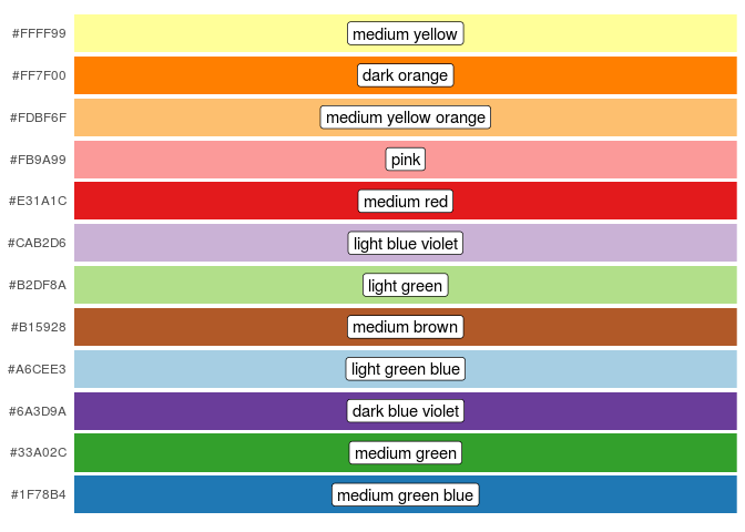 ColorNameR is a small library designed to give names to colors, which is accomplished by looking up their closest equivalent category in the RHS and then translating its code to natural language with the UPOV glossary. It provides the following: