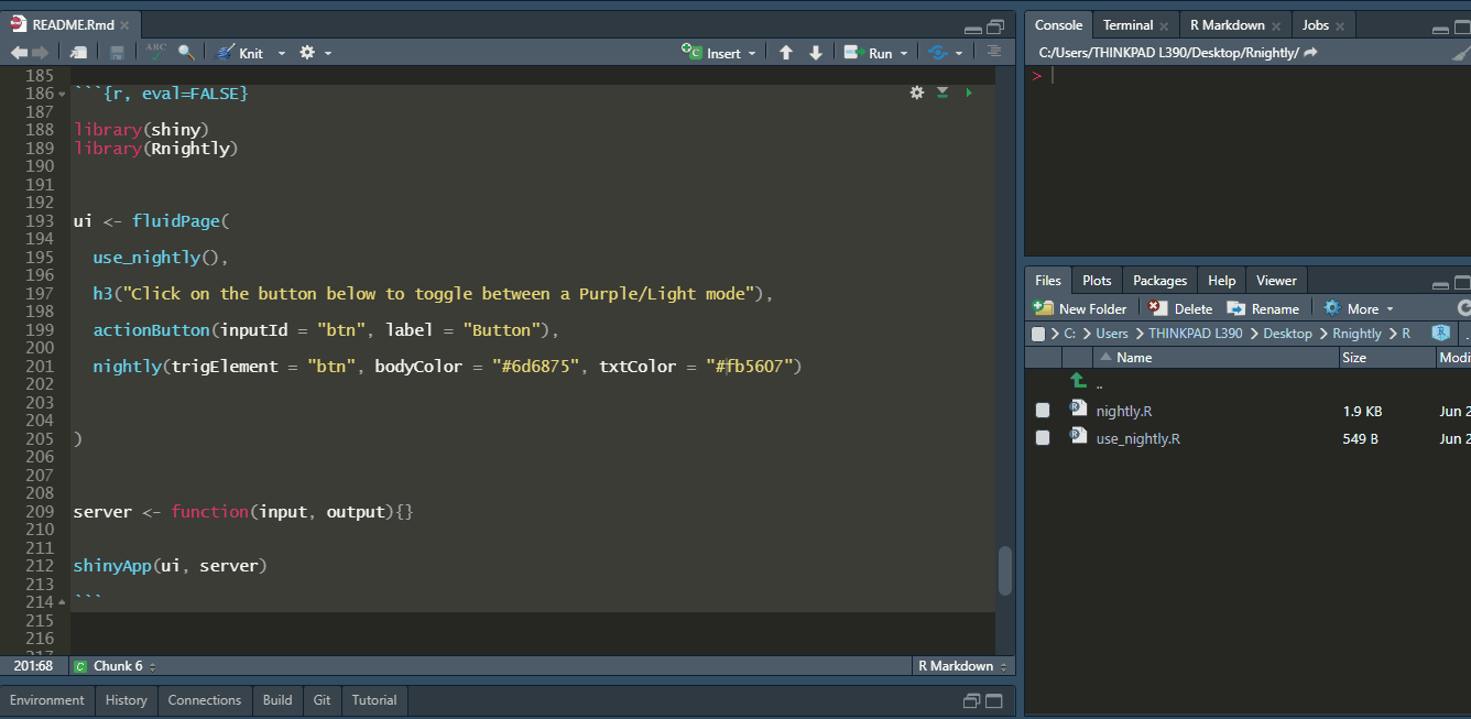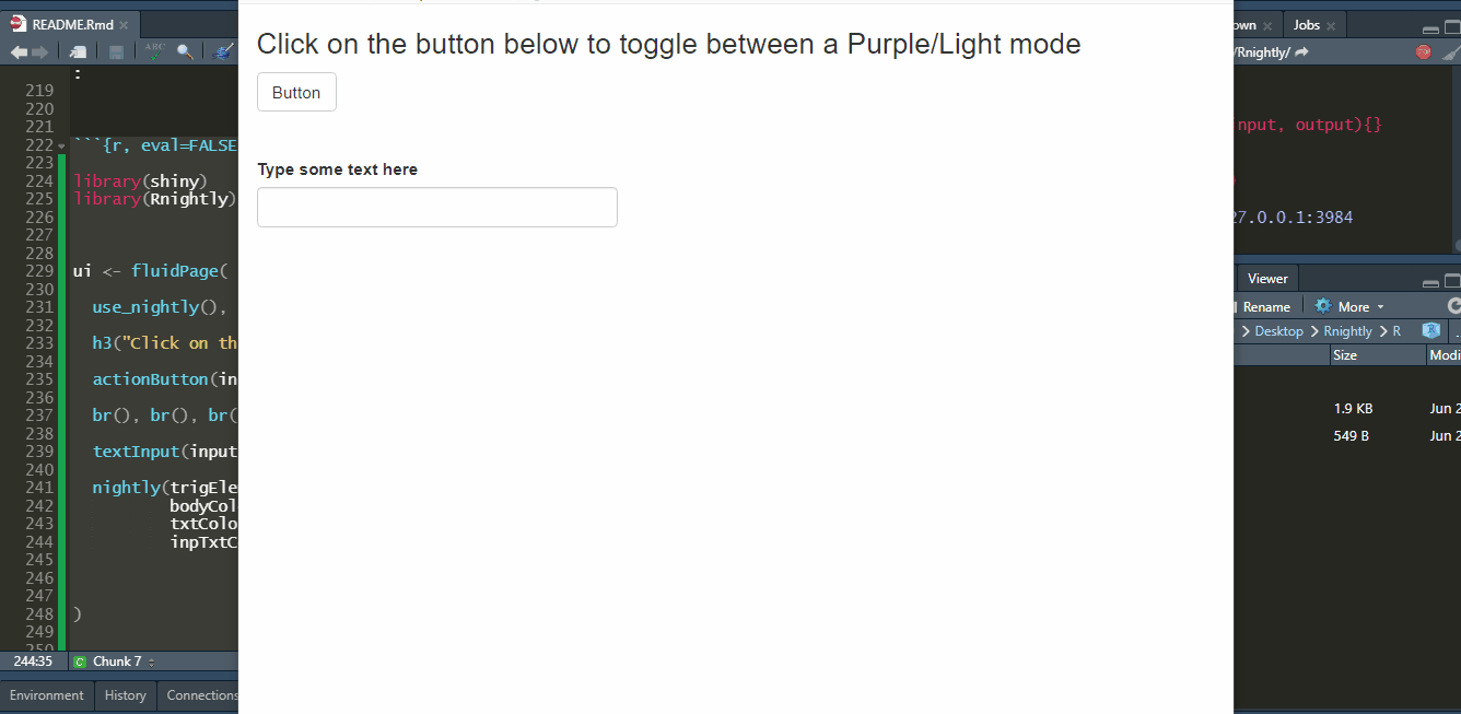 nightly(trigElement = "btn") # Make sure to provide the same id