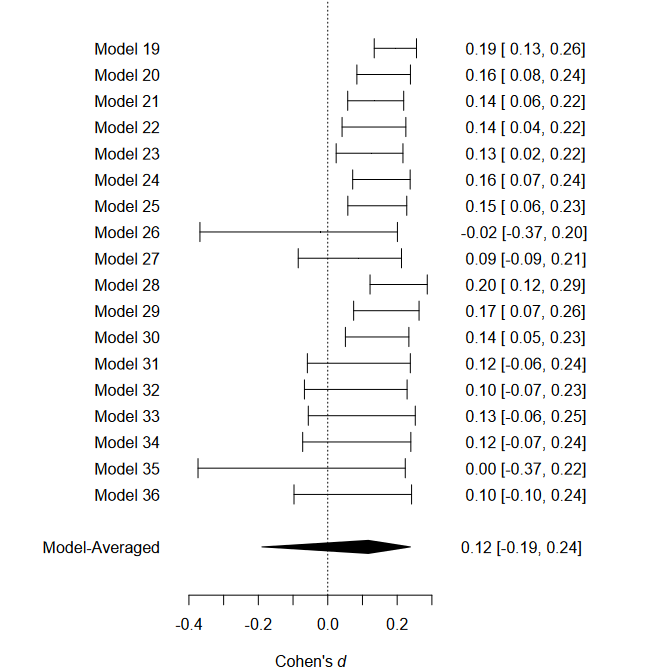 and visualization of the effect size estimates from models assuming