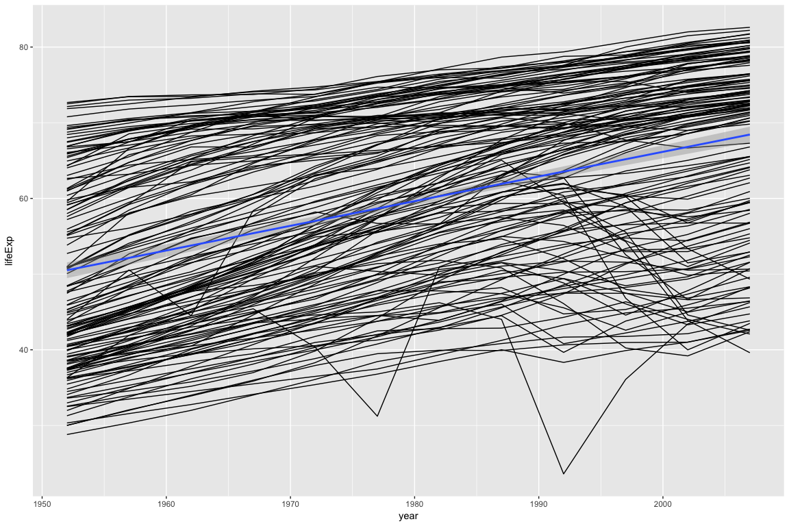 trelliscopejs::facet_trelliscope()ggplot(gapminder, aes(year, lifeExp)) +
