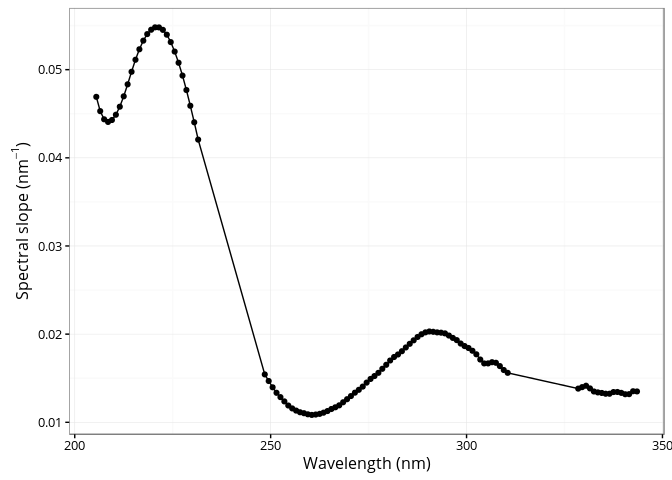 ## [1] 1.325082The cdom_spectral_curve() function generates the