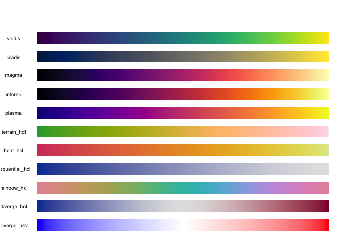 # [37] "rainbow" "terrain_hcl" "heat_hcl" "sequential_hcl"