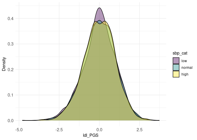 densityplot(dataset, prs_col = "ldl_PGS", phenotype_col = "sbp_cat")