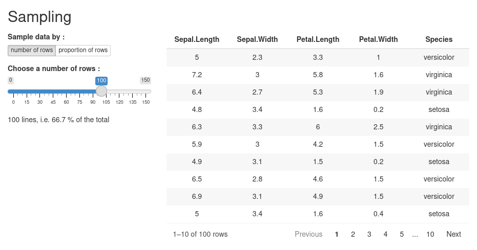 This module extracts a sample from a data.frame, based