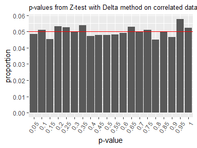 This version of the Z-test yields p-values that follow the expected uniform distribution under the null hypothesis, even when within-user correlation is present.