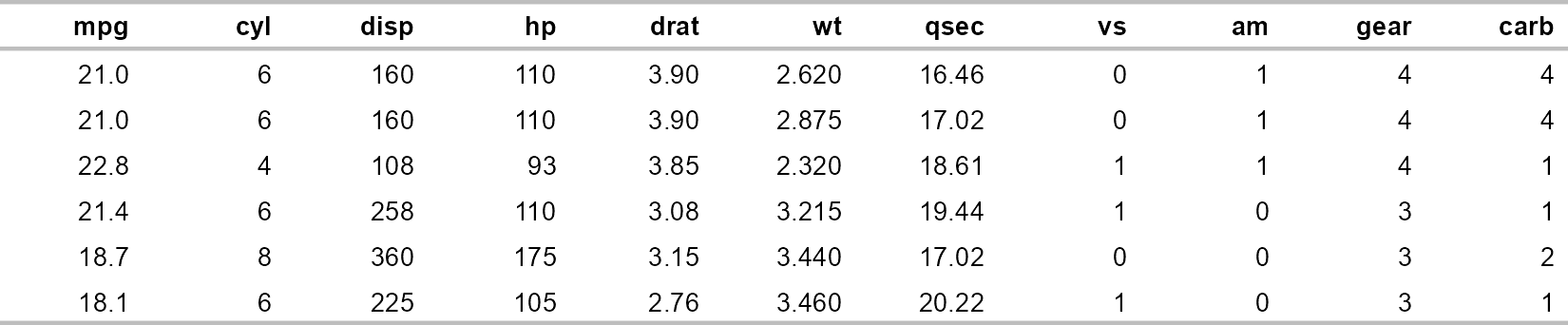 save_as_docx(path = "mytable.docx")A flextable object is a data.frame representation. An