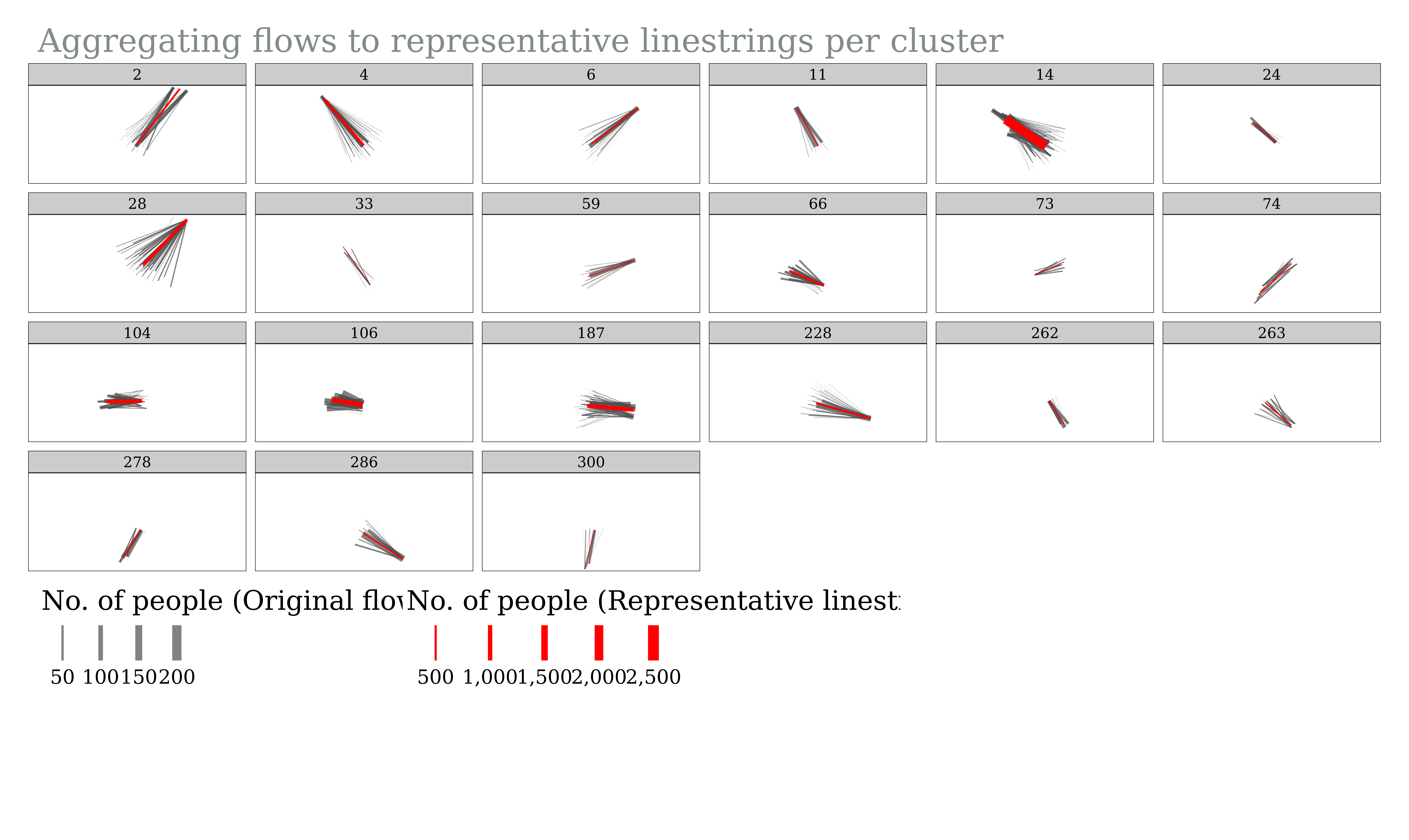 main.title = paste0("Aggregating flows to representative linestrings per cluster"),