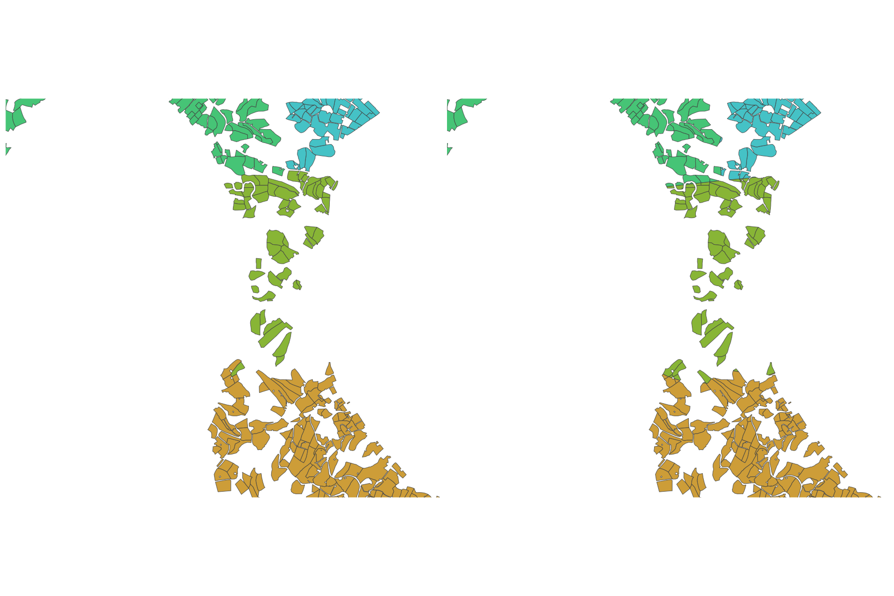 boundaries to a community.db$fude_split: Provides cleaner boundaries, but polygon