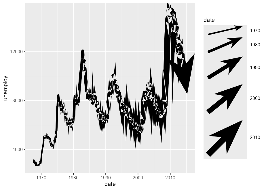 which has no equivalent in vanilla ggplot2. It adds arrows in between