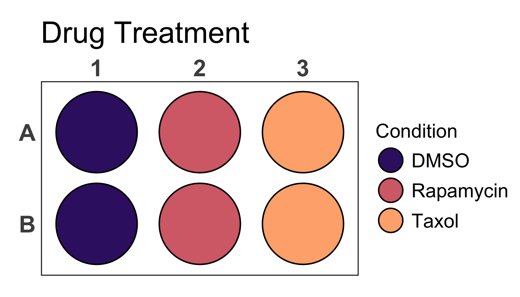 You can further customise your plot in various ways. Lets take a discrete 6-well plate dataset as an example. This dataset only contains three categories assigned to the six wells of the plate. This could be for example a pipetting scheme of an experiment.