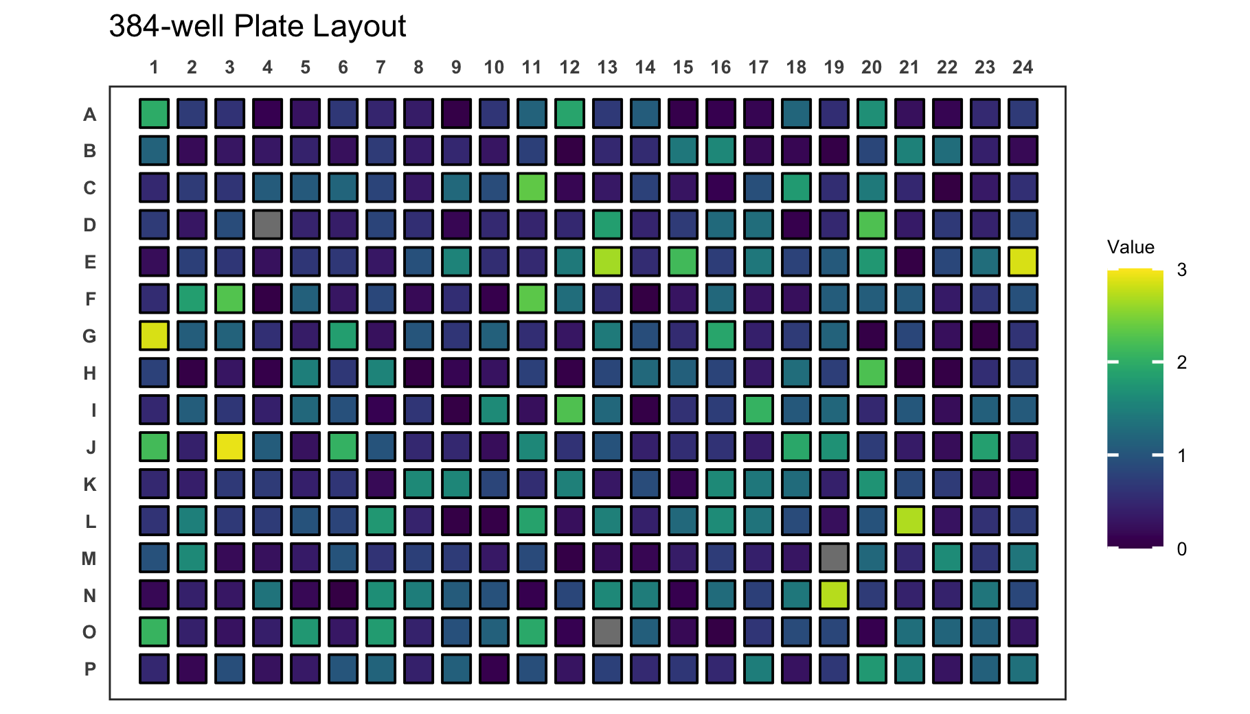 If you have a dataset that does not contain a value for each well, empty wells will be uncoloured. Empty wells can either contain NA as their value argument or they can be completely omitted from the input data frame.