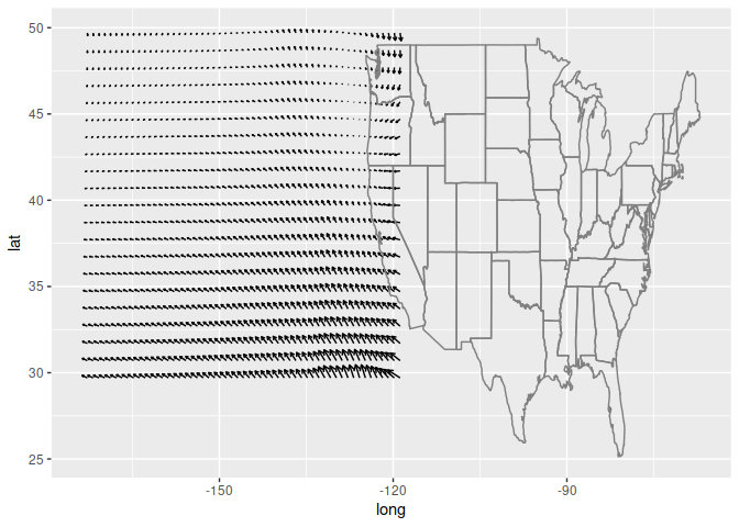 ggplot(seals, aes(x=long, y=lat, u=delta_long, v=delta_lat)) +