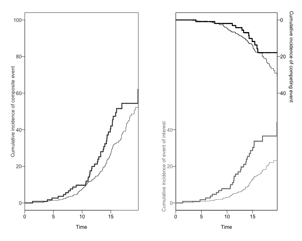mydat.CIF<-CRCumInc(df=data, time=exit, event=event, exposed=b1nb0, print.attr=T)