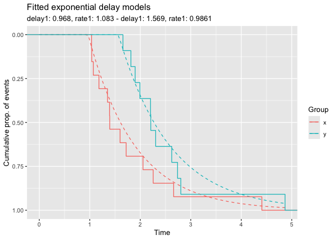 Inference on the model parameters is possible through confint for bootstrap confidence intervals and delay_test for parameter comparisons in a two group setting.