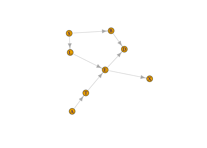 cp5 <- compile(cpt_list(asia, g) , root_node = "X")
