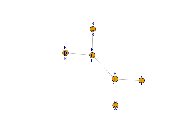 jt6 <- jt(cp6, propagate = "no")We can now inspect the collecting junction tree and see which cliques are leaves and parents