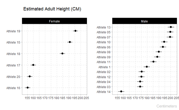 Predicted Adult Height Plot (note the two options depending on cms or inches)