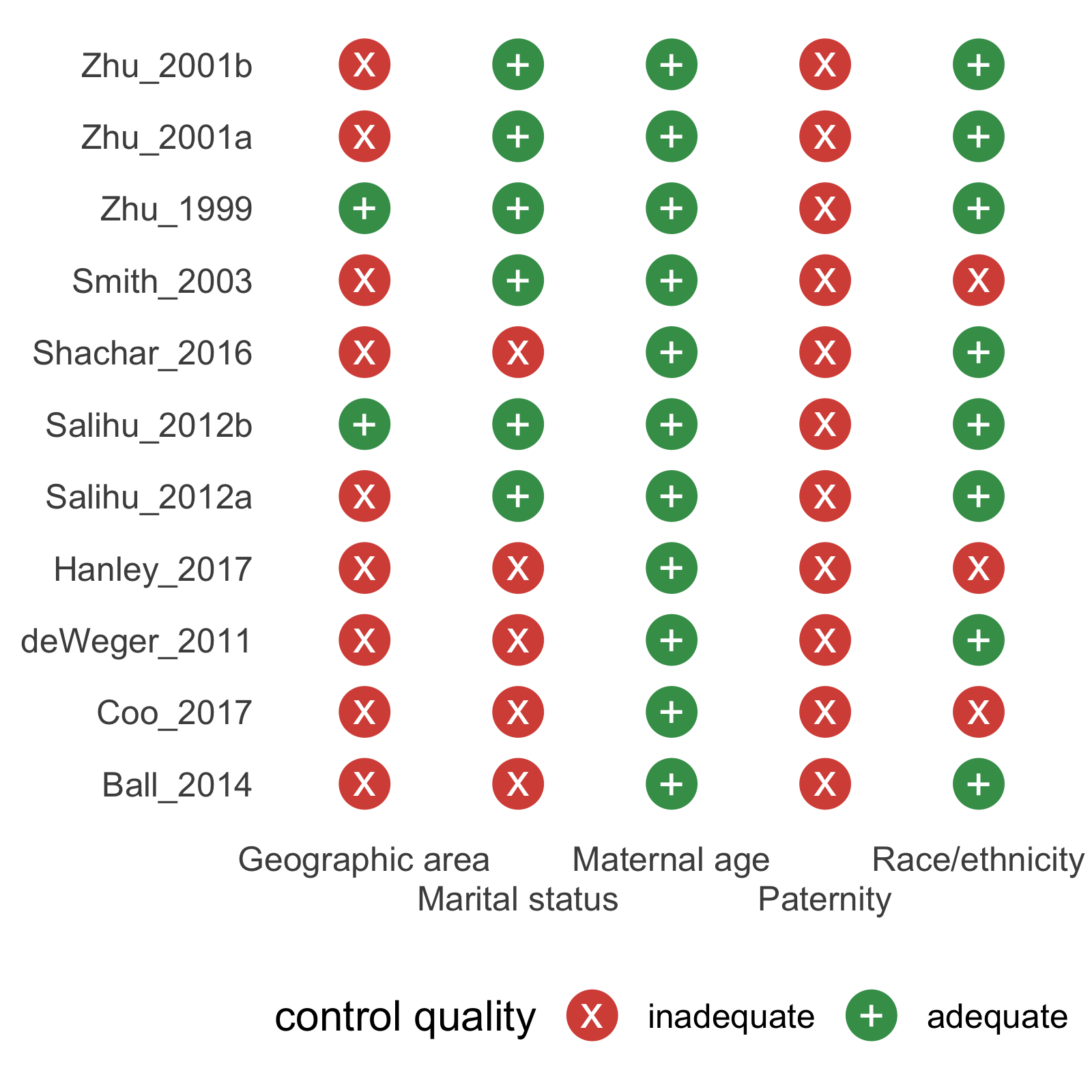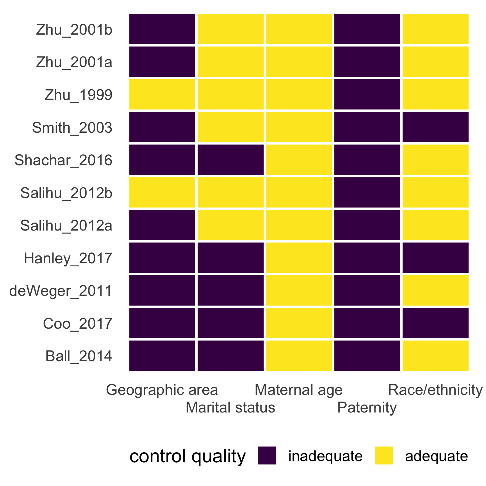#>  6 Sociodemographics Maternal age Y             Salihu_2012a adequate