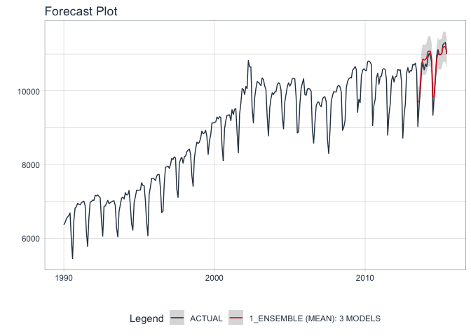 #> 3 3 <workflow> GLMNETThen turn that Modeltime Table into a Modeltime Ensemble.