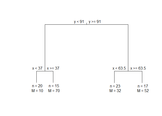 #> 2) y < 91 35 43328.460 0.9472896