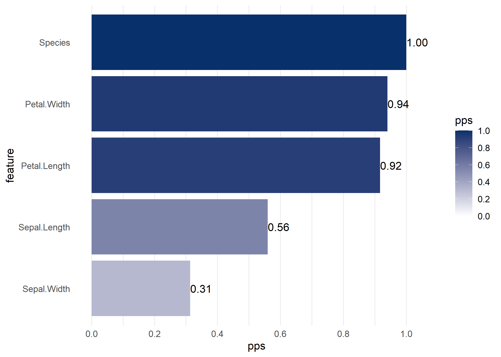 #> 9   Petal.Width  Sepal.Width            predictive power score 0.21746588