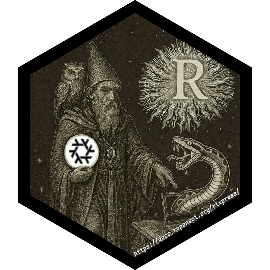 The {rix} package brings this power into the R ecosystem. It makes it easy to generate declarative, date-pinned Nix expressions that work consistently across systems. This expressions can then be used to build reproducible development environments that include programming languages, packages and other tools. {rixpress} addresses the next part, the execution graph. With a concise R API, it lets users describe analytic steps, inputs, and outputs, while delegating execution to Nix for guaranteed determinism.