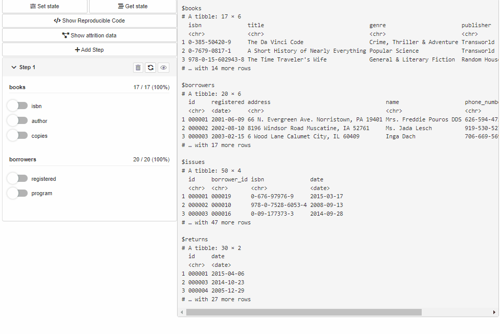 If you’re interested in more features of shinyCohortBuilder please visit the package website.