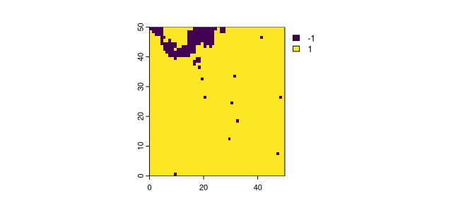 The goal of spatialising is to perform simulations of binary spatial raster data using the Ising model.