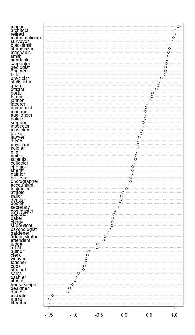 #>     secretary     librarian     scientist  statistician         pilot