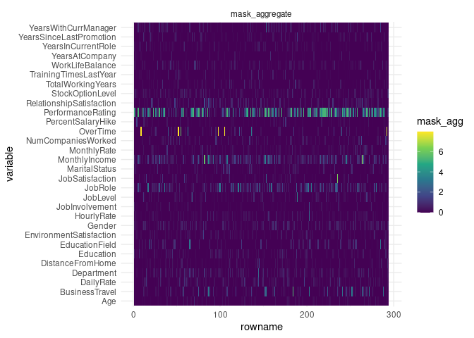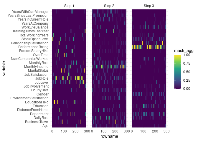 #> 1 roc_auc binary 0.544TabNet has intrinsic explainability feature through the visualization of attention map, either aggregated: