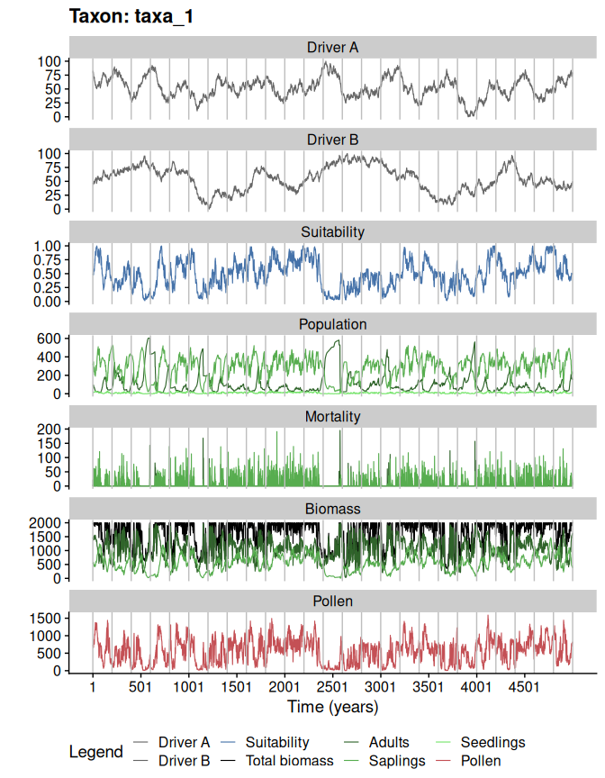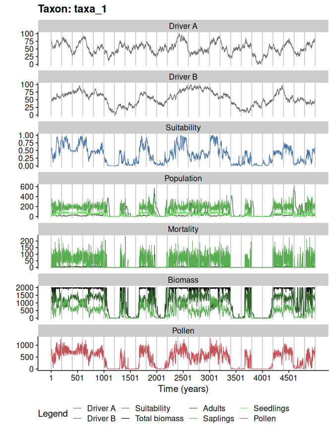 3. Simulate population dynamics and pollen productivity of the virtual taxa.