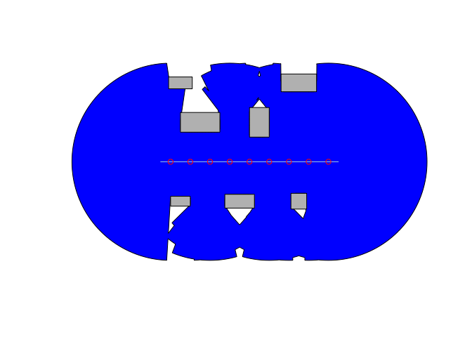 pak::pak("CityRiverSpaces/visor")This is a basic example which shows you how to use visor to calculate the isovist for view points on an arbitrary geometry (a line) and a set of occluders: