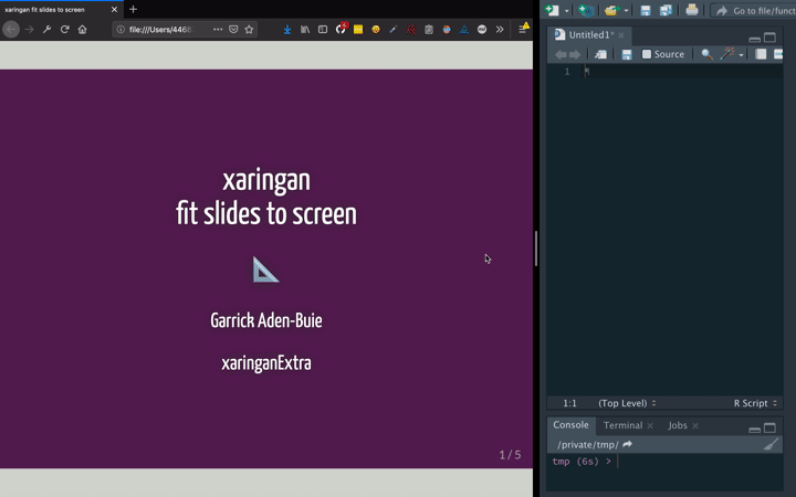 In certain situations, like when showing slides in split screen next to another window like RStudio, this causes the slides to become rather small. Alternatively, it’s a great way to be able to adapt your slides to the aspect ratio of the projector or television screen when you don’t know the ratio ahead of time.