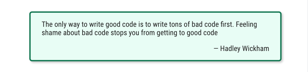 You can also customize the text that is shown by default when hovering over a code chunk with the button_text argument. Use success_text to specify the text shown when the copy action works, or error_text for the text shown when the copy action fails. If the copy action fails, the text will still be selected, so the user can still manually press Ctrl+C to copy the code chunk.
